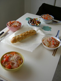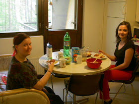 我們也因此吃大餐,是Maija主導的義大利肉醬麵加希臘沙拉!